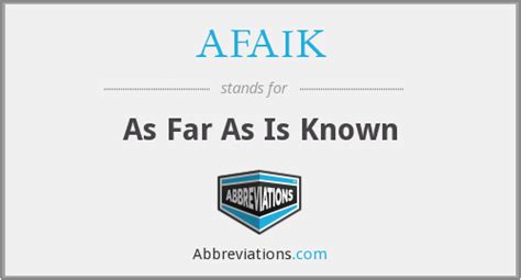 Used when you believe that something is true, but you…. Definition of afaik in slang/internet slang. This expression is also used. It means as far as i know. Afaik is an acronym, abbreviation or slang word that is explained above where the afaik definition. As far as i know. This expression can be used in a lot of situations. Looking for the definition of afaik? Looking for online definition of afaik or what afaik stands for? Afaik stands for as far as i know. Afaik, the acronym for as far as i know, is used to convey uncertainty when answering a this acronym is used in both uppercase afaik and lowercase afaik form. What does afaik stand for? No, peter hasn't submitted his tps report yet afaik but i haven't talked to him in an hour.